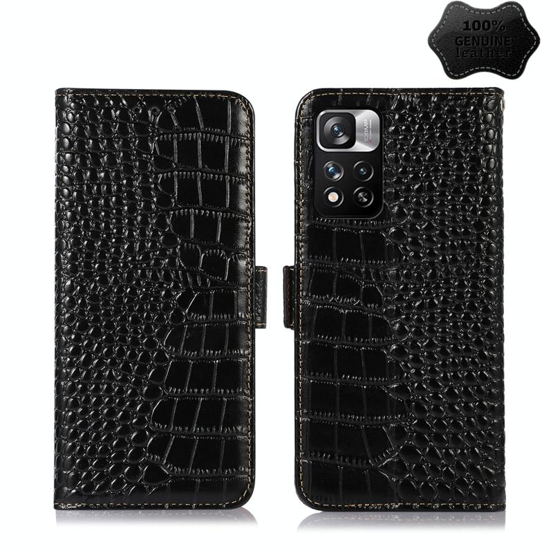Θήκη δέρματος Xiaomi Redmi Note 11 Pro 4G / 5G Global από γνήσιο δέρμα κροκόδειλου (Μαύρο)