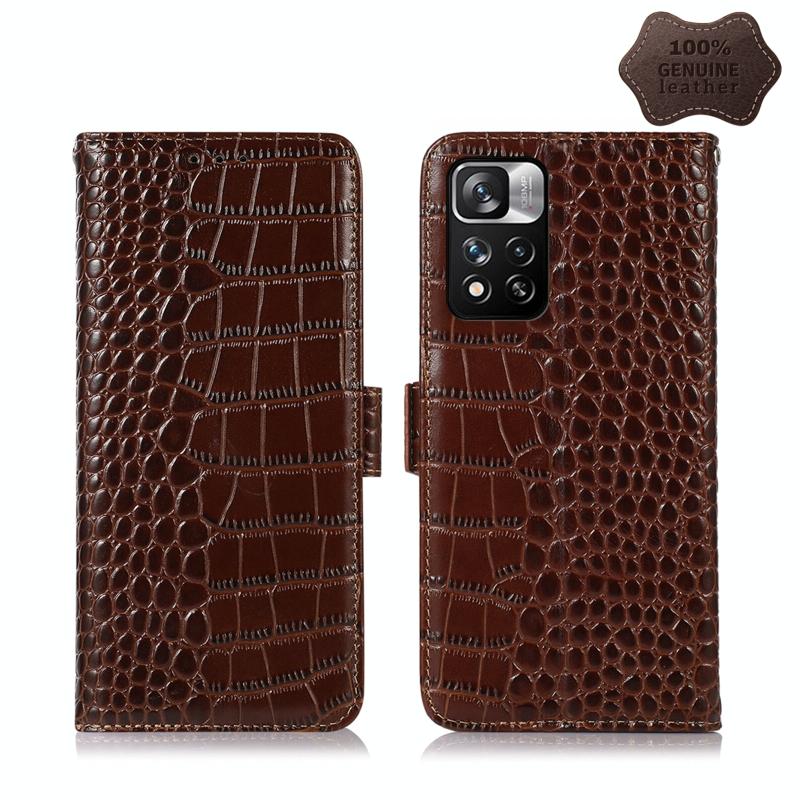 Θήκη δέρματος Xiaomi Redmi Note 11 Pro 4G / 5G Global από γνήσιο δέρμα κροκόδειλου (Καφέ)