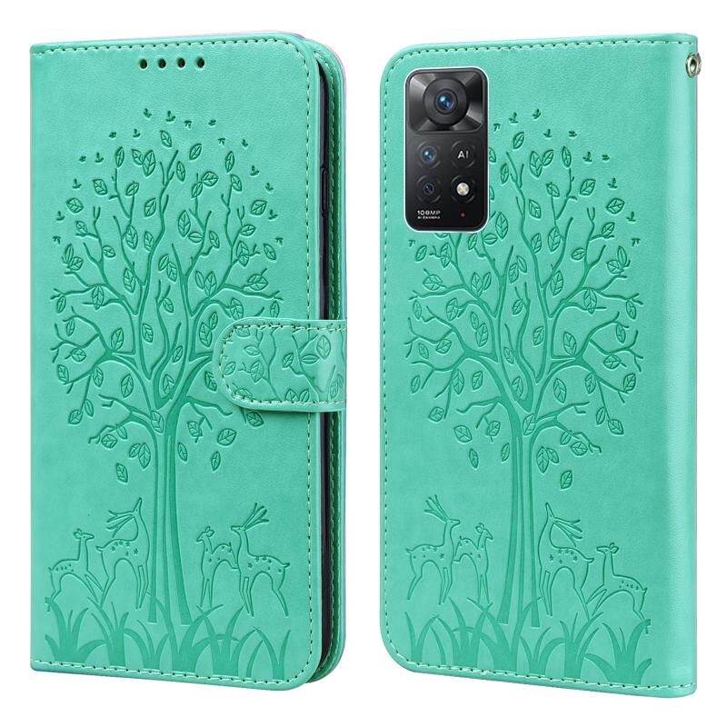 Θήκη τηλεφώνου από δέρμα με σχέδιο δέντρου και ελαφιού, τύπου flip, για Xiaomi Redmi Note 11 Pro 4G / 5G (Μωβ)