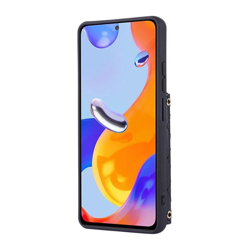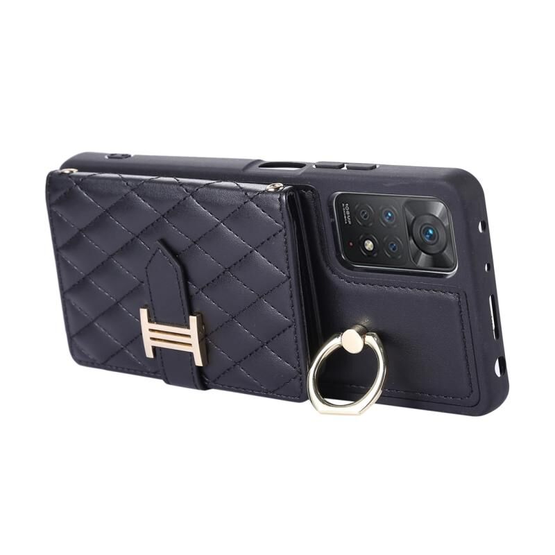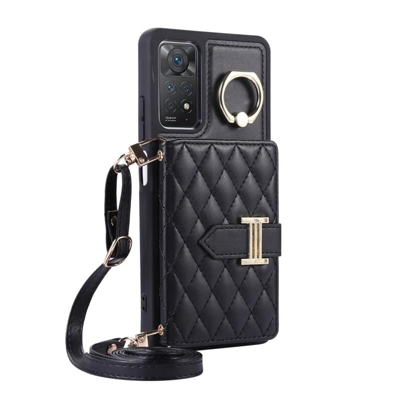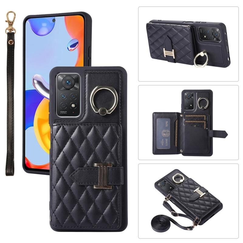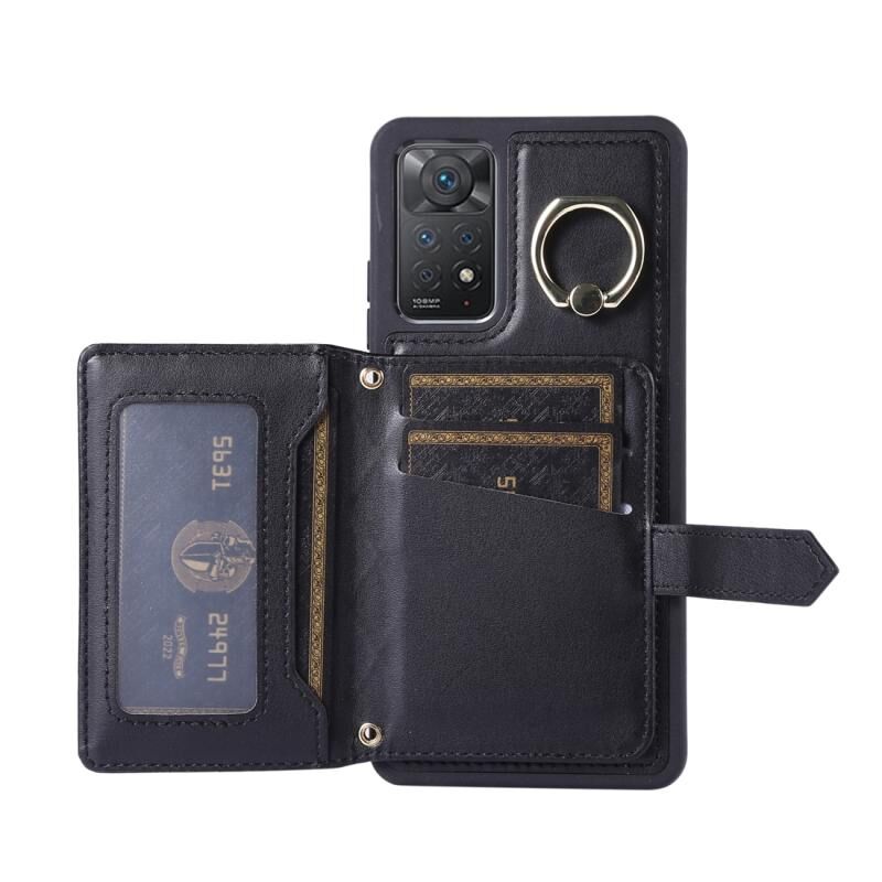 Για Xiaomi Redmi Note 11 Pro 4G Οριζόντια κάρτα τσάντα δαχτυλίδι κάτοχος τηλέφωνο υπόθεση με διπλή κορδόνι (μαύρο)