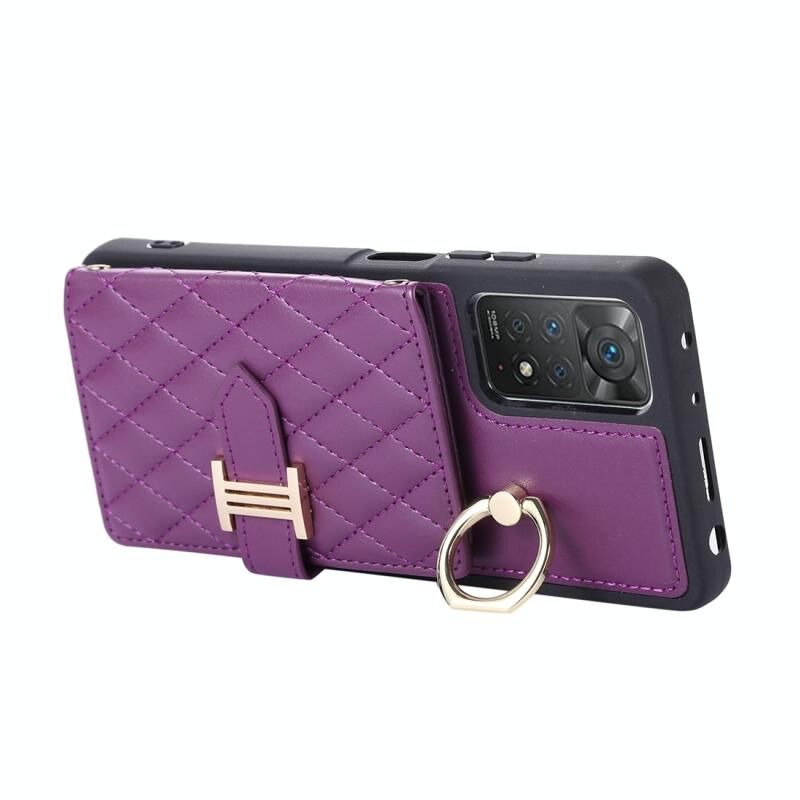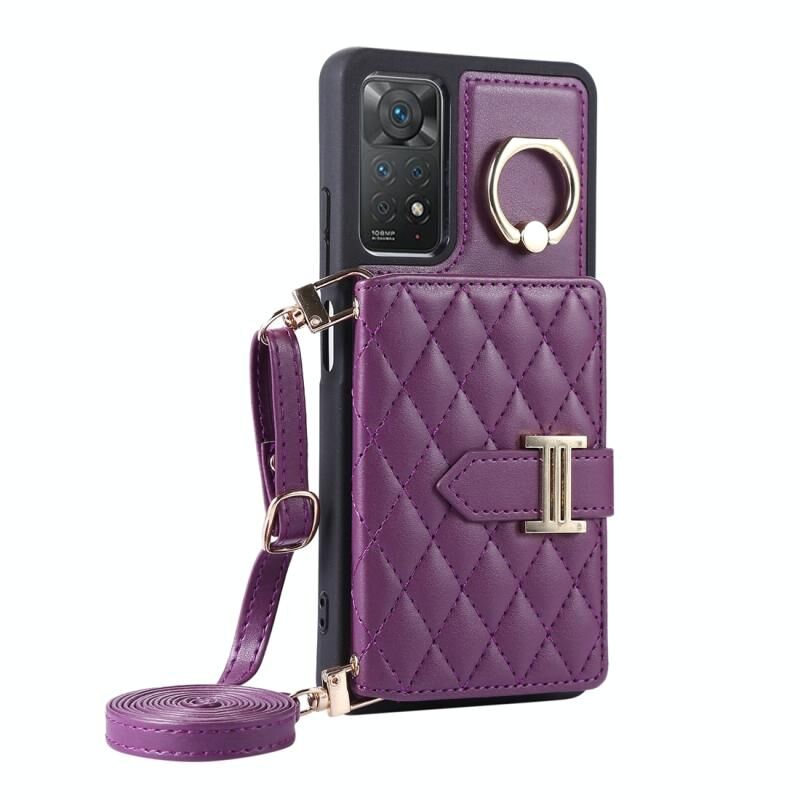 Για Xiaomi Redmi Note 11 Pro 4G Οριζόντια κάρτα τσάντα δαχτυλίδι κάτοχος τηλέφωνο υπόθεση με διπλή κορδόνι (σκούρο μωβ)
