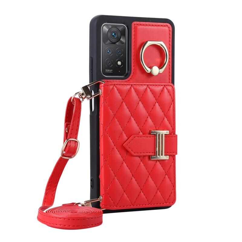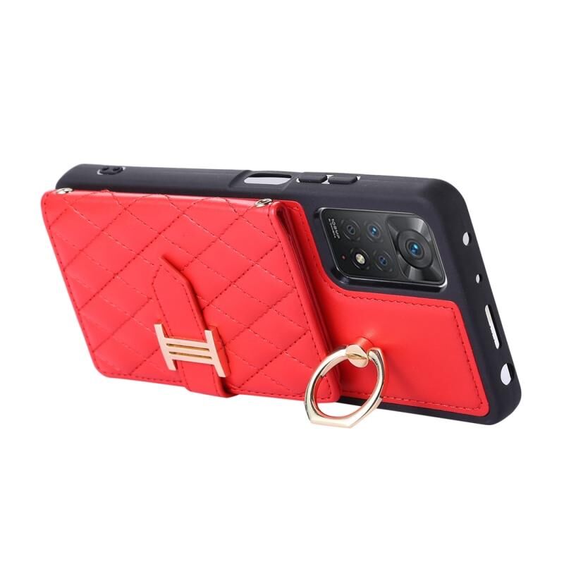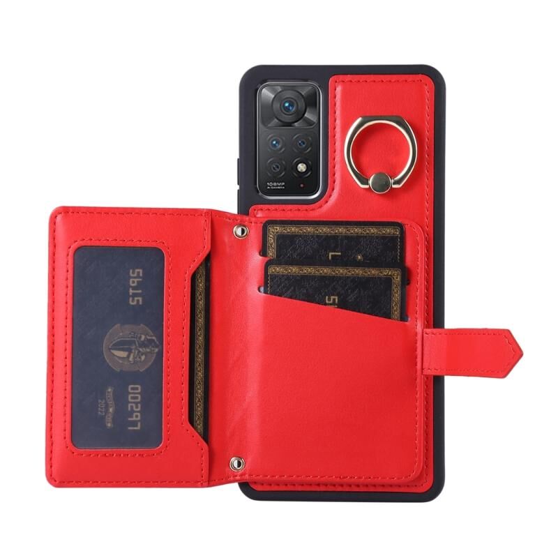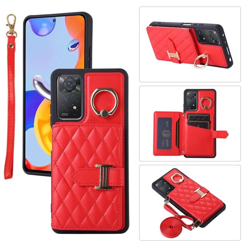 Για Xiaomi Redmi Note 11 Pro 4G Οριζόντια κάρτα τσάντα δαχτυλίδι κάτοχος τηλέφωνο υπόθεση με διπλή κορδόνι (κόκκινο)