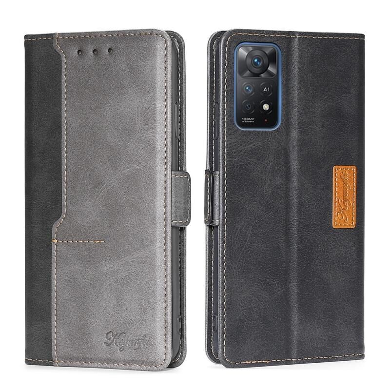 Για Xiaomi Redmi Note 11 Pro 4G / Redmi Note 11 Pro 5G Παγκόσμια αντίθεση χρώματος πλευρά πόρπη δερμάτινη θήκη τηλεφώνου (μαύρο + γκρι)