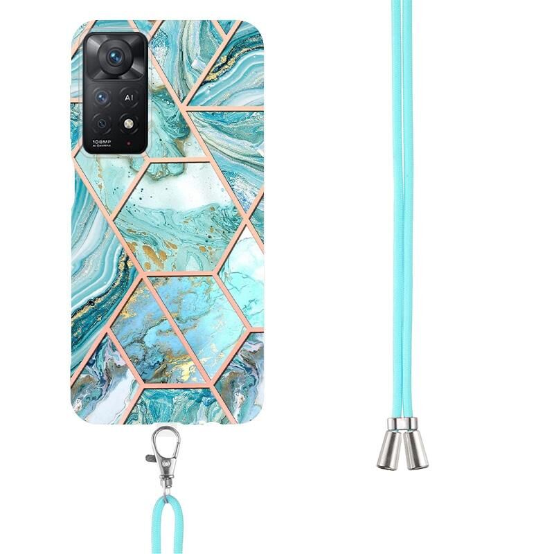 Θήκη τηλεφώνου TPU με ξένη ηλεκτρολυτική επιμετάλλωση και ραφή από μάρμαρο με κορδόνι για Xiaomi Redmi Note 11 Pro 5G / 4G (Μπλε)