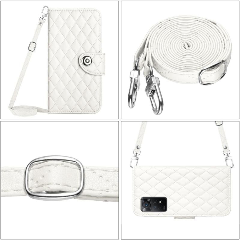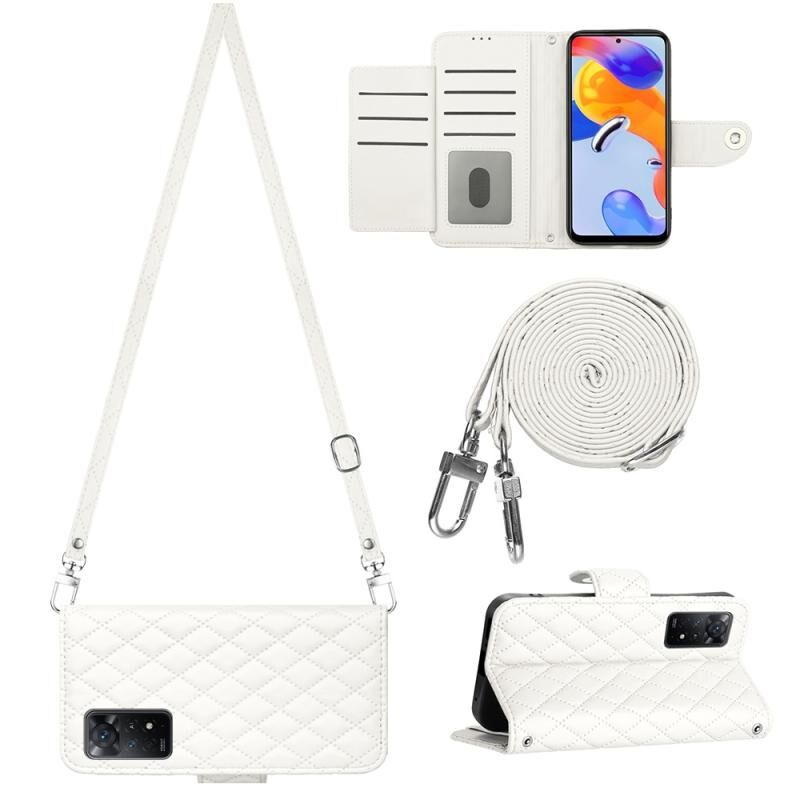 Για Xiaomi Redmi Note 11 Pro 5G/4G Global Rhombic Texture Flip δερμάτινη θήκη τηλεφώνου με μακρύ κορδόνι (λευκό)