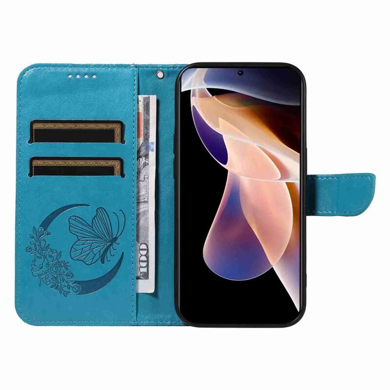 Θήκη τηλεφώνου από δέρμα με ανάγλυφο σχέδιο πεταλούδας Swallowtail για Xiaomi Redmi Note 11 Pro 5G / 4G (Μπλε)
