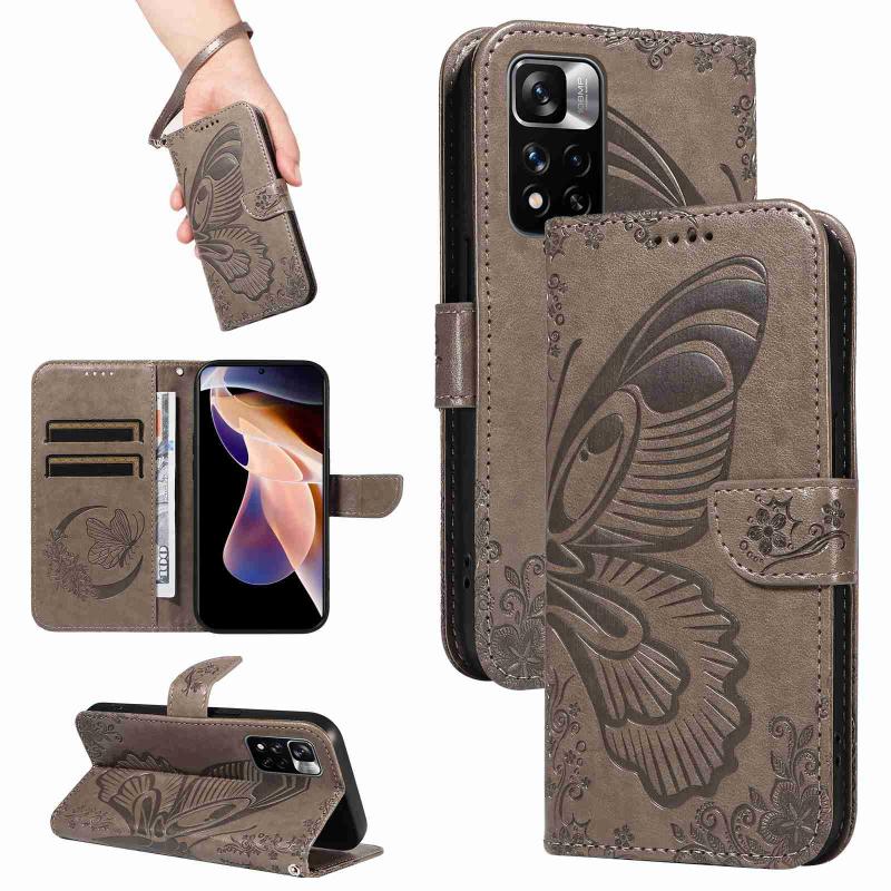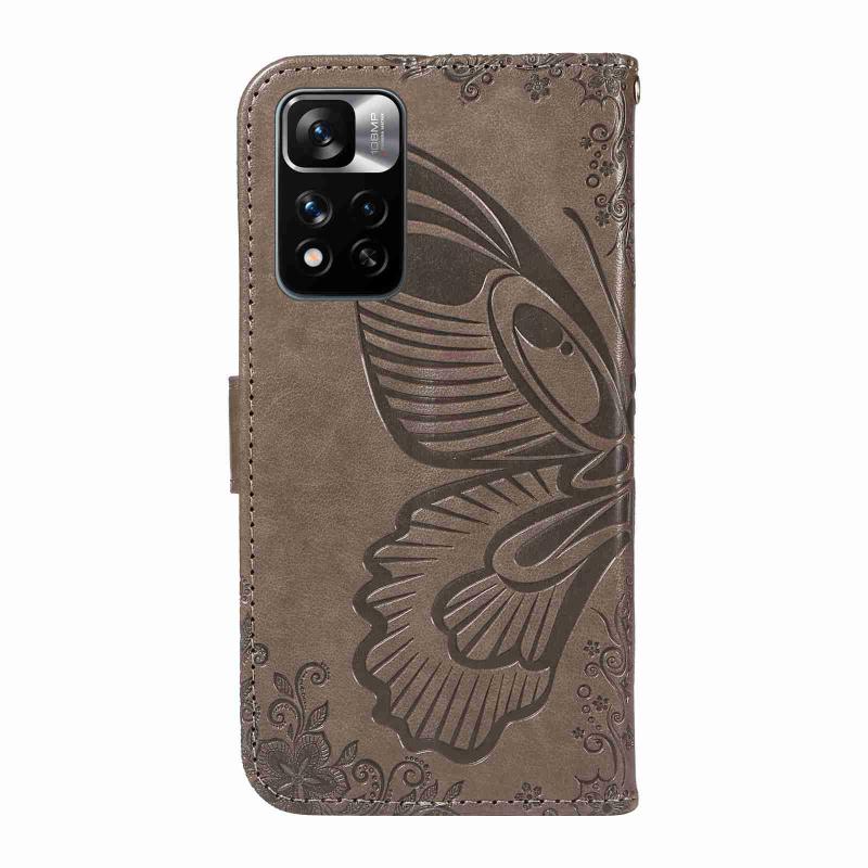 For Xiaomi Redmi Note 11 Pro 5G / 4G Swallowtail Butterfly Embossed Leather Phone Case(Grey)