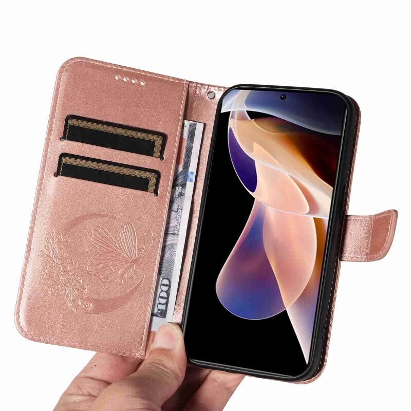 Θήκη τηλεφώνου από δέρμα με ανάγλυφο σχέδιο πεταλούδας Swallowtail για Xiaomi Redmi Note 11 Pro 5G / 4G (Μπλε)