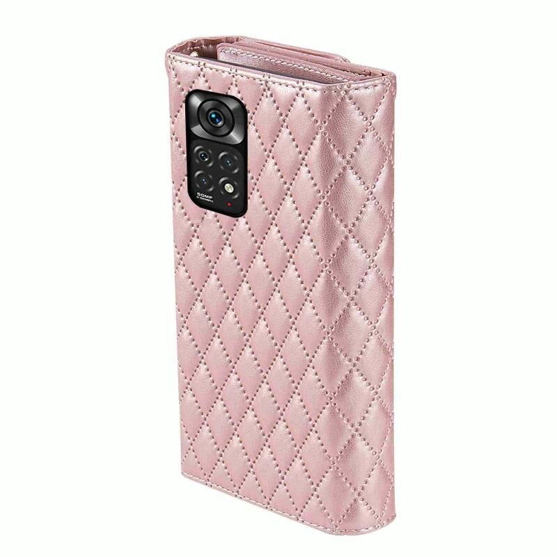 Για Xiaomi Redmi Note 11 Pro 5G / 4G φερμουάρ πολλαπλών καρτών πορτοφόλι ρομβοειδής δερμάτινη θήκη τηλεφώνου (ροζ χρυσό)
