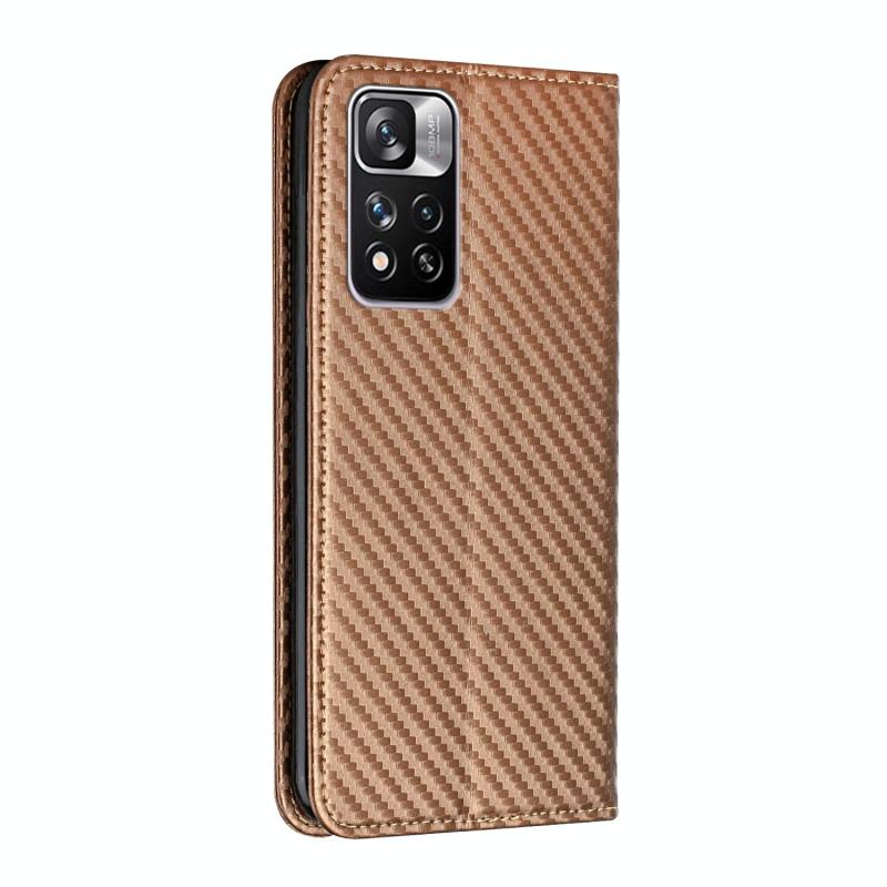 Για Xiaomi Redmi Note 11 Pro 5G CN Version Θήκη Δερμάτινη με Υφή Άνθρακα (Καφέ)