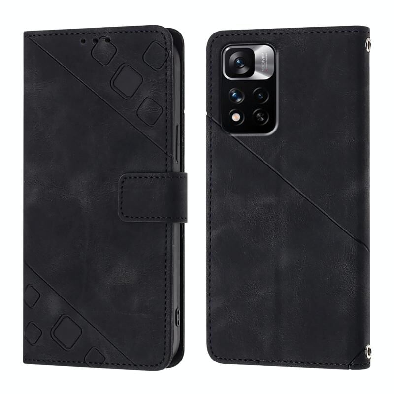 Για Xiaomi Redmi Note 11 Pro + 5G EU δέρμα αίσθηση ανάγλυφη δερμάτινη θήκη τηλεφώνου (Μαύρο)