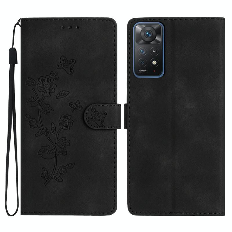 Για Xiaomi Redmi Σημείωση 11 Pro 5G Παγκόσμια λουλούδι πεταλούδα ανάγλυφο μοτίβο δερμάτινη θήκη τηλεφώνου (μαύρο)