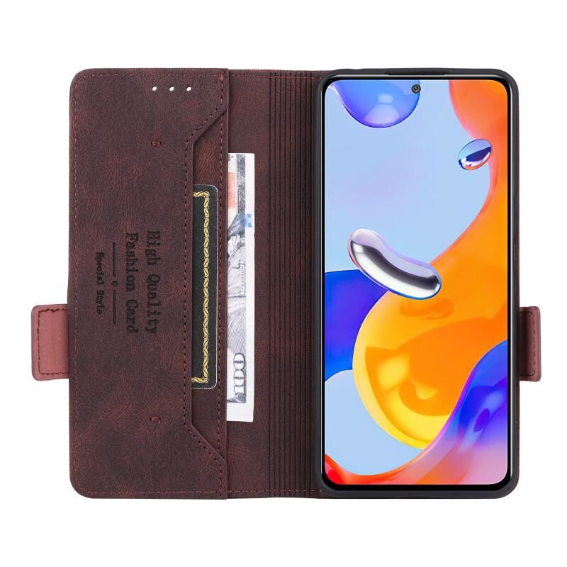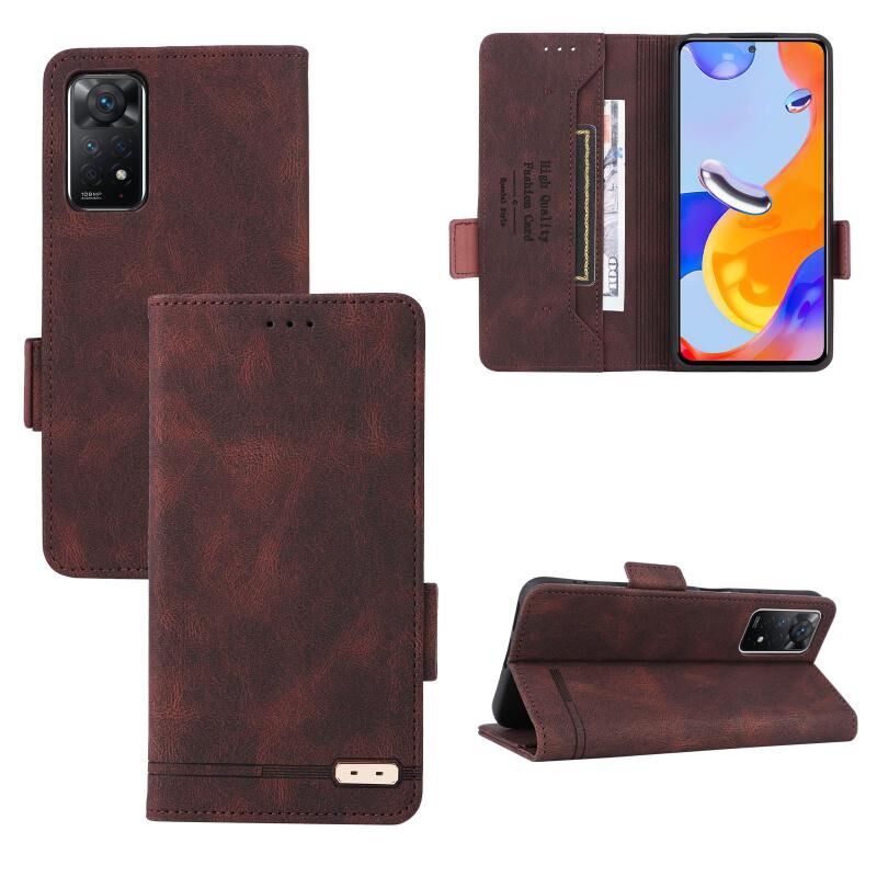 Για Xiaomi Redmi Note 11 Pro 5G μαγνητικό κούμπωμα Flip δερμάτινη θήκη τηλεφώνου (Καφέ)