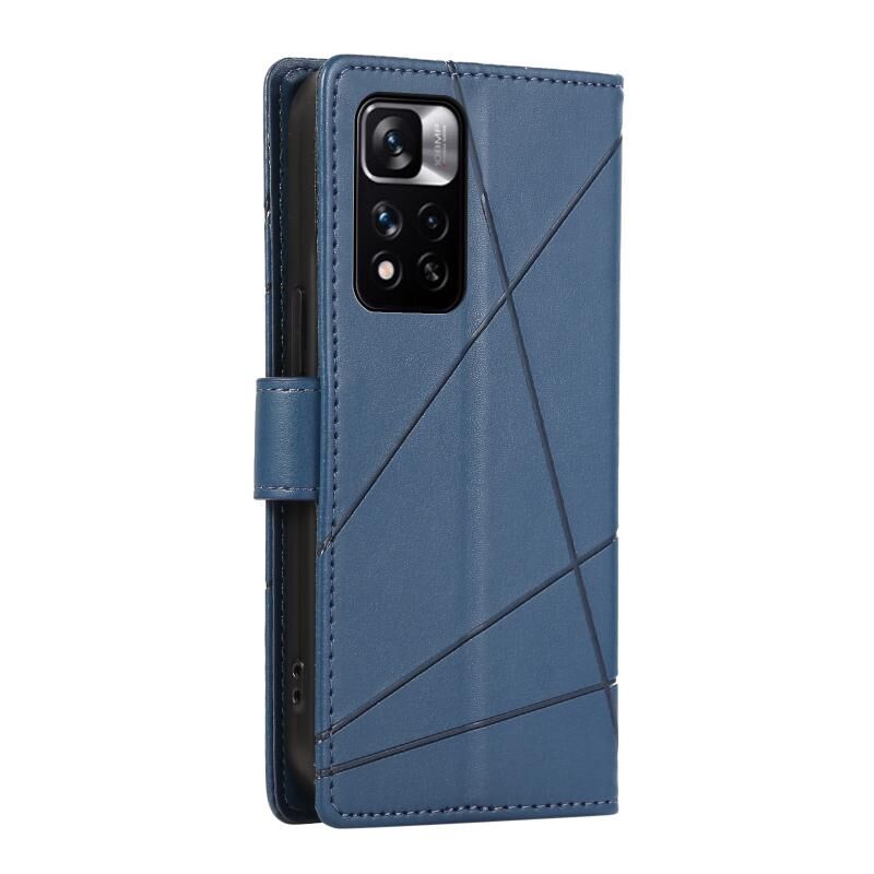 Θήκη τηλεφώνου Xiaomi Redmi Note 11 Pro+ 5G από γνήσιο δέρμα PU με ανάγλυφη υφή και γραμμές (Μπλε)