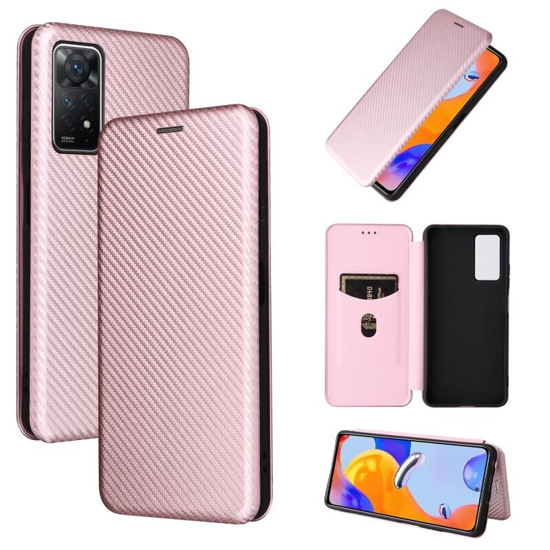 Για Xiaomi Redmi Note 11 Pro Carbon Fiber υφή οριζόντια Flip δέρμα τηλέφωνο υπόθεση (ρόζ)