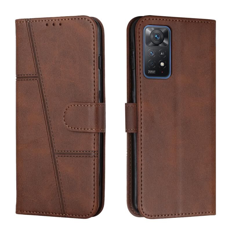 Για Xiaomi Redmi Σημείωση 11 Pro Ξένη έκδοση ραφή μοσχάρι υφή Πόρπη δερμάτινη θήκη τηλεφώνου (καφέ)