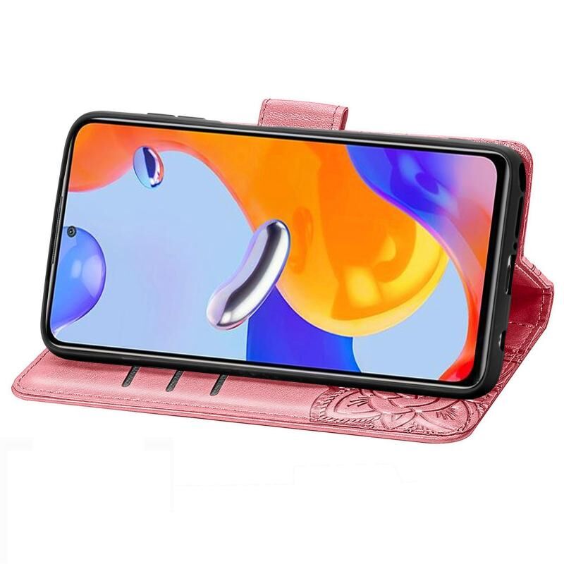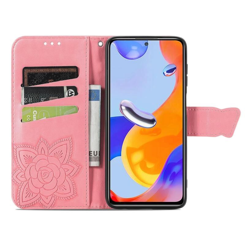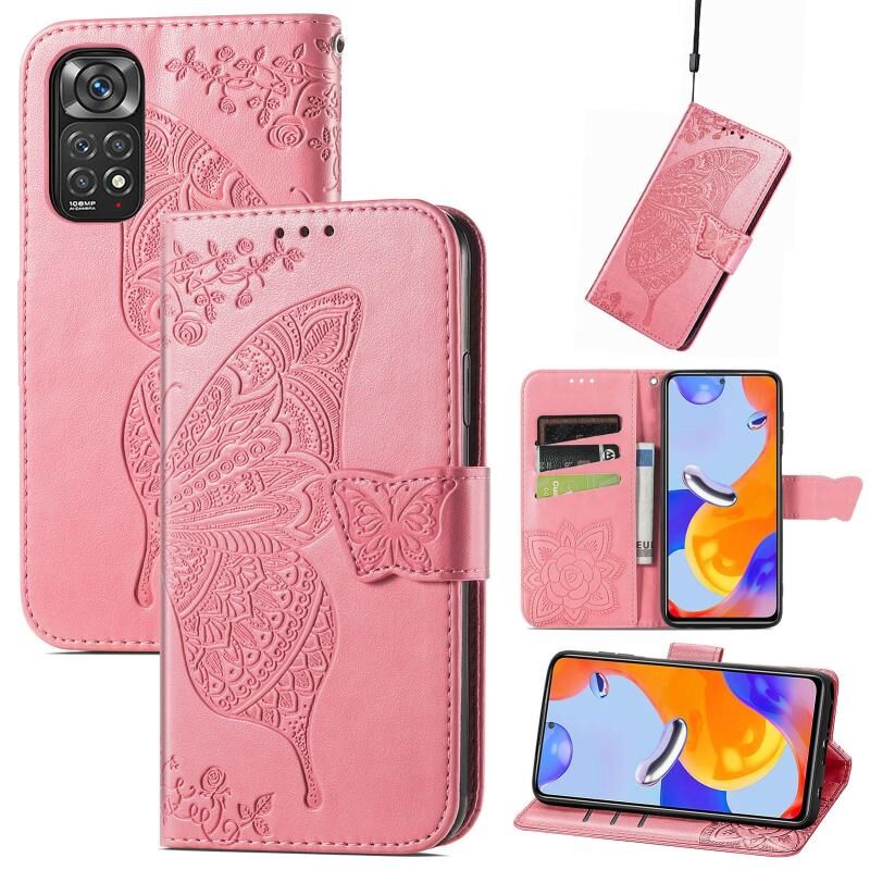 Θήκη τηλεφώνου δερμάτινη ανάγλυφη με σχέδιο πεταλούδας και λουλουδιών για Xiaomi Redmi Note 11 Pro Global (Μαύρο)