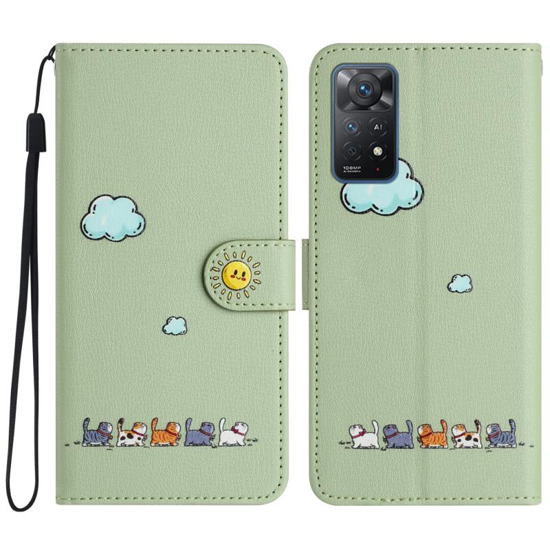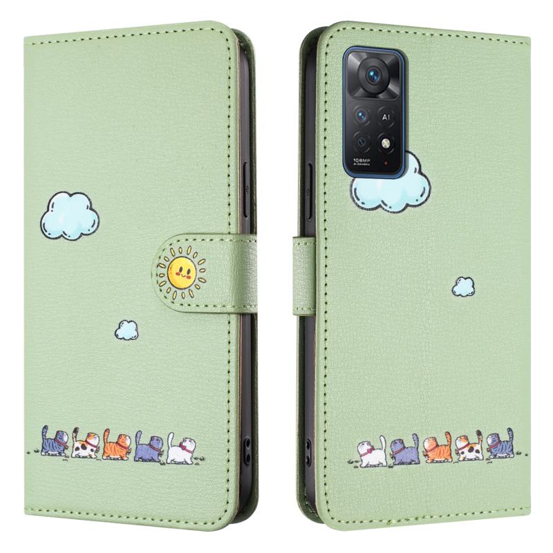 For Xiaomi Redmi Note 11 Pro Global Cartoon Cats Leather Phone Case(Green)