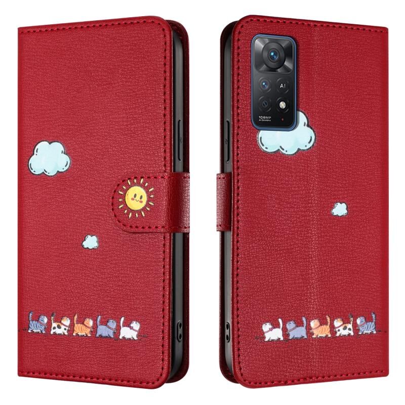Θήκη τηλεφώνου από δέρμα με σχέδια καρτούν γάτας για Xiaomi Redmi Note 11 Pro Global (Κόκκινο)