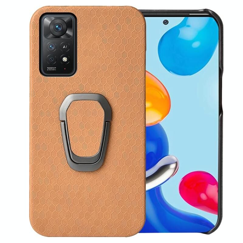 Για Xiaomi Redmi Note 11 Pro Παγκόσμιο δαχτυλίδι κάτοχος κηρήθρα PU υπόθεση τηλεφώνου (πορτοκαλί)