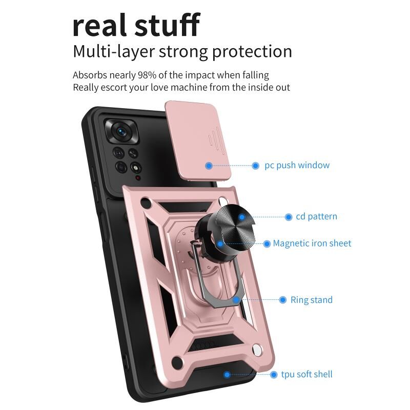 Για Xiaomi Redmi Note 11 Pro Παγκόσμια συρόμενη κάμερα Cover Design TPU + PC Προστατευτική θήκη τηλεφώνου (χρυσό)