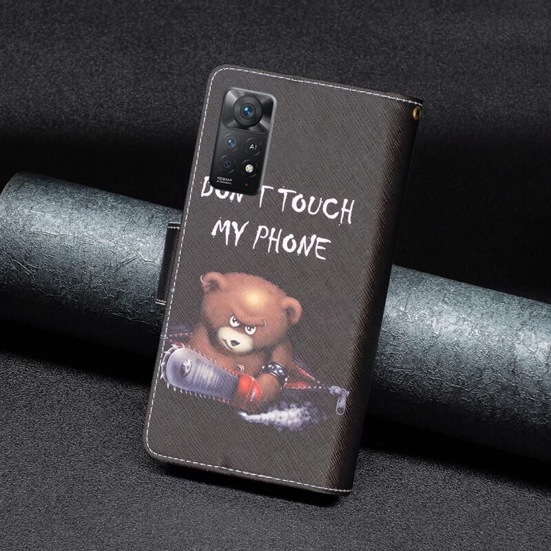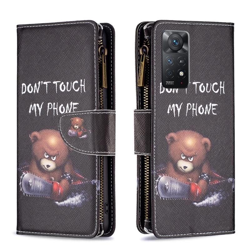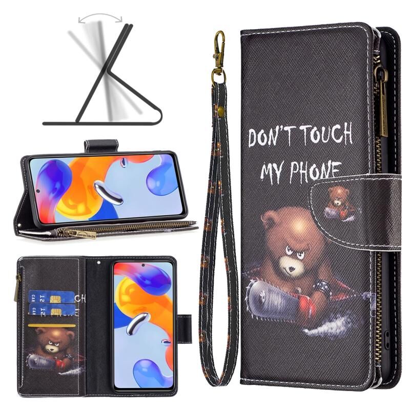 Θήκη τηλεφώνου δερμάτινη με φερμουάρ και πολύχρωμο σχέδιο για Xiaomi Redmi Note 11 Pro International (Αρκούδα)
