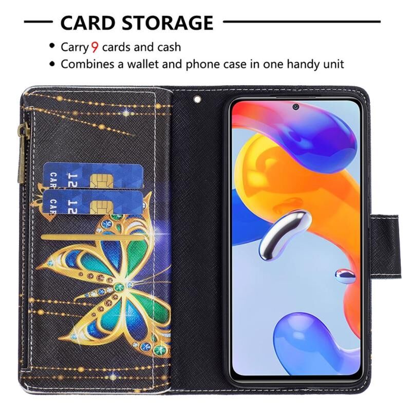 Θήκη τηλεφώνου δερμάτινη με φερμουάρ και πολύχρωμο σχέδιο για Xiaomi Redmi Note 11 Pro International (Μεγάλη Πεταλούδα)