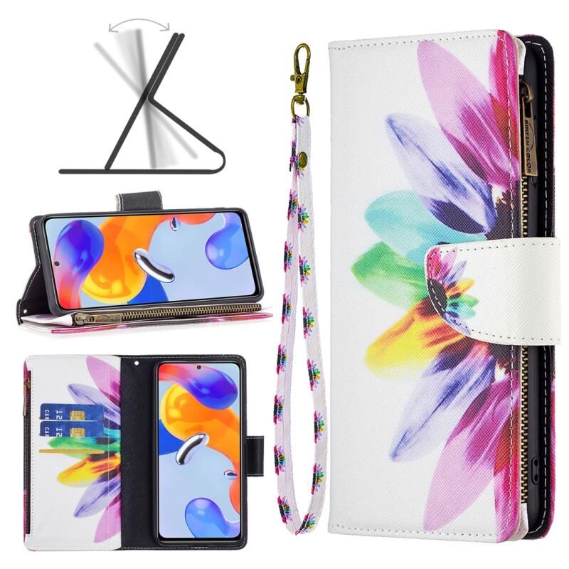 Θήκη τηλεφώνου από δέρμα με φερμουάρ και πολύχρωμο σχέδιο για Xiaomi Redmi Note 11 Pro International (Ηλιάνθος)