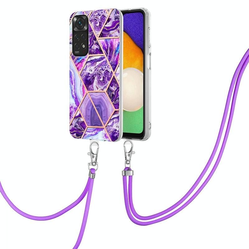 Για Xiaomi Redmi Note 11 Pro / Note 11 Pro+ Θήκη κινητού τηλεφώνου TPU με ηλεκτρολυτική επιμετάλλωση και μαρμάρινο συνδυασμό με κορδόνι (Σκούρο Μωβ)