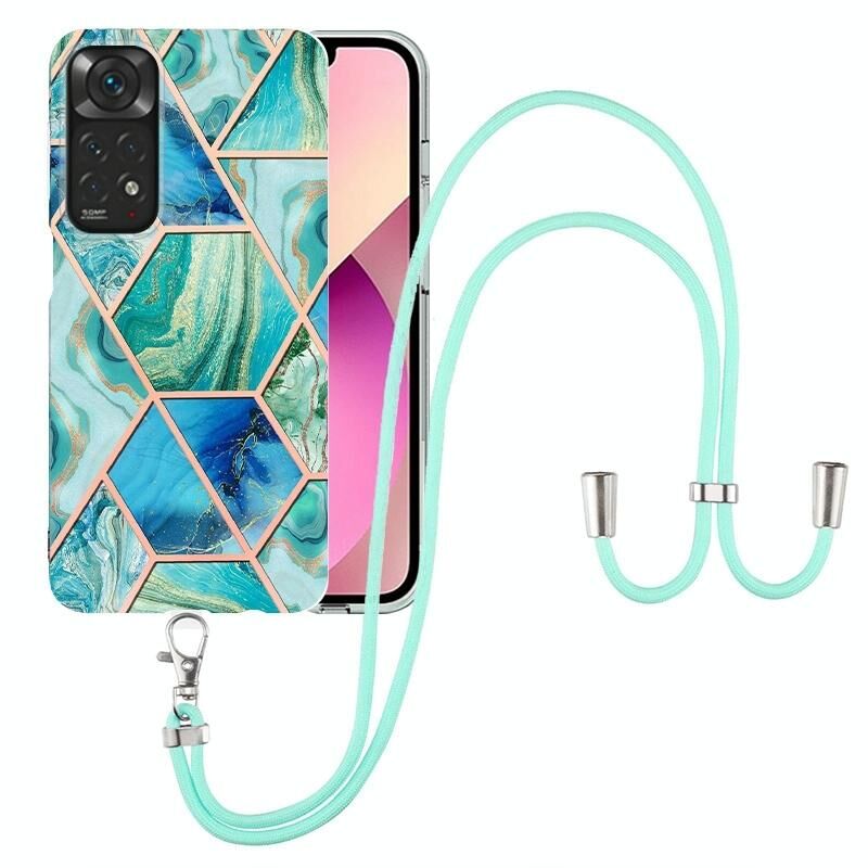 Για Xiaomi Redmi Note 11 Pro / Note 11 Pro+ Θήκη κινητού τηλεφώνου TPU με ηλεκτρολυτική επιμετάλλωση και μαρμάρινο συνδυασμό με κορδόνι (Σκούρο Μωβ)