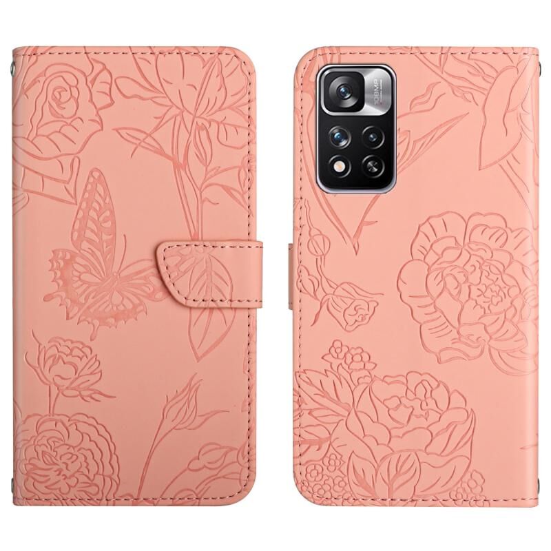 Θήκη τηλεφώνου από δέρμα με ανάγλυφο σχέδιο πεταλούδας και παιώνιας, με αίσθηση δέρματος, για Xiaomi Pinkmi Note 11 Pro / Poco M4 Pro 5G (Κόκκινο)