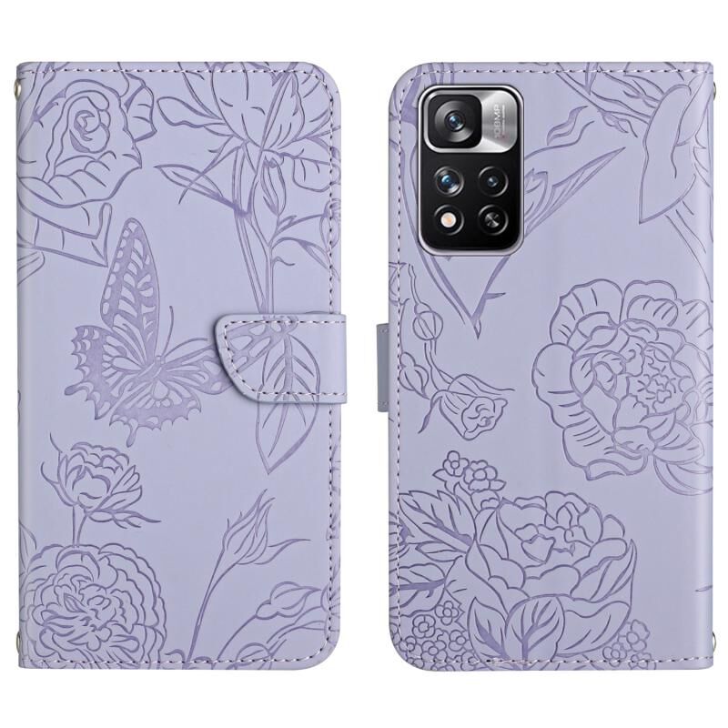 Θήκη τηλεφώνου από δέρμα με ανάγλυφο σχέδιο πεταλούδας και παιώνιας, με αίσθηση δέρματος, για Xiaomi Purplemi Note 11 Pro / Poco M4 Pro 5G (Κόκκινο)