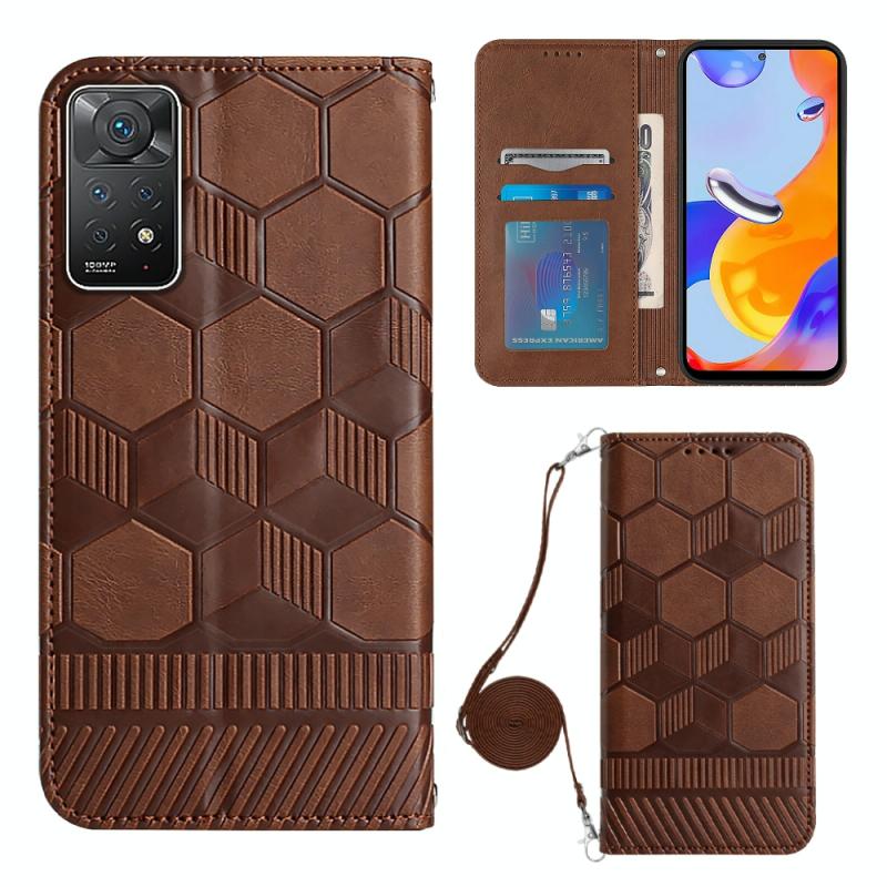 Θήκη Xiaomi Redmi Note 11 Pro/11 Pro 5G/11 Pro+ India, Δερμάτινη με Σχέδιο Ποδοσφαίρου & Μαγνητικό Κλείσιμο (Καφέ)