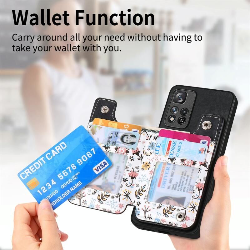 2. Λειτουργία πορτοφολιού: Η δερμάτινη θήκη είναι εξοπλισμένη με υποδοχές για κάρτες και ένα μικρό ποσό μετρητών.