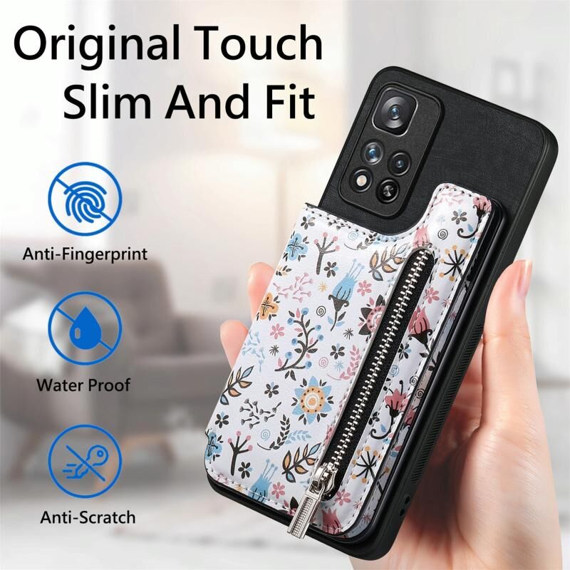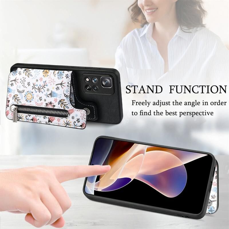 Θήκη κινητού τηλεφώνου με φερμουάρ και ρετρό σχέδιο για Xiaomi Redmi Note 11 Pro+ (Καφέ)