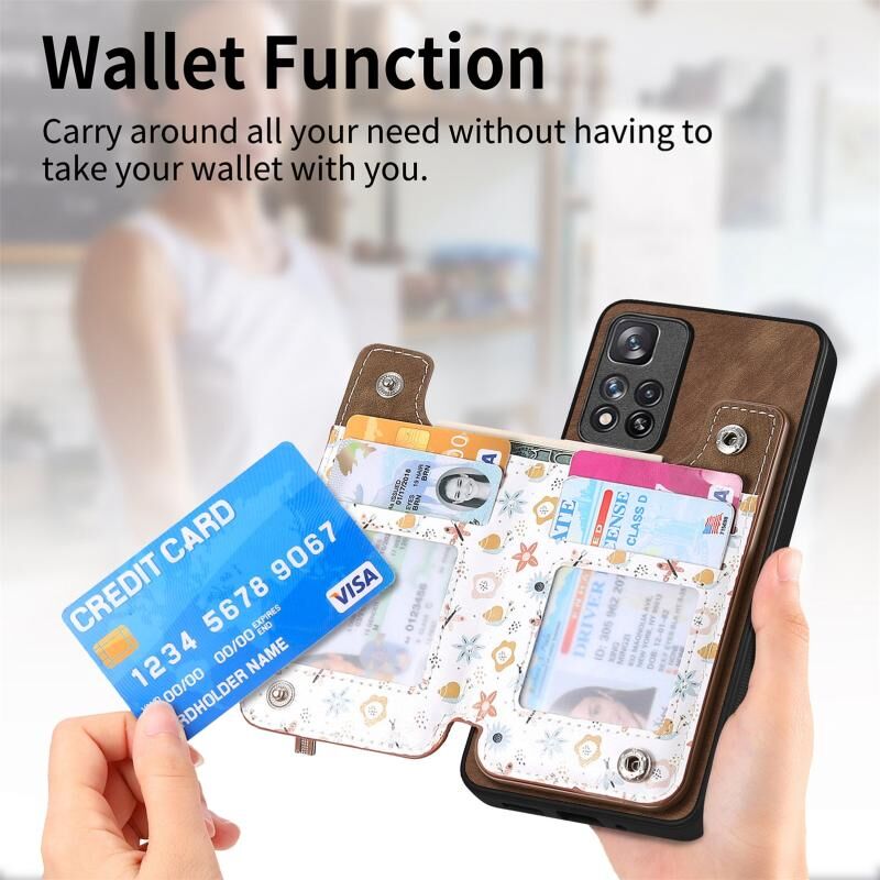 2. Λειτουργία πορτοφολιού: Η δερμάτινη θήκη είναι εξοπλισμένη με υποδοχές για κάρτες και ένα μικρό ποσό μετρητών.