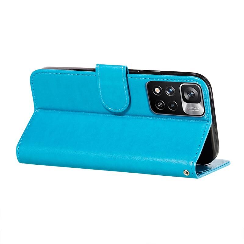 Για Xiaomi Redmi Note 11 Pro Αμιγές χρώμα δερμάτινη θήκη τηλεφώνου με θήκη & υποδοχές για κάρτες & πορτοφόλι & κορδόνι (μπλε)