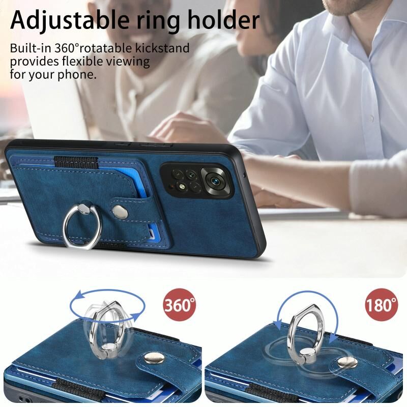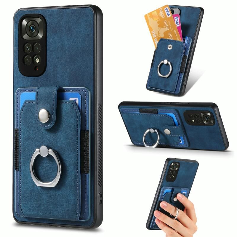 Για Xiaomi Redmi Σημείωση 11 Ρετρό δέρμα-συναίσθημα δαχτυλίδι κάρτα πορτοφόλι υπόθεση τηλεφώνου (μπλε)