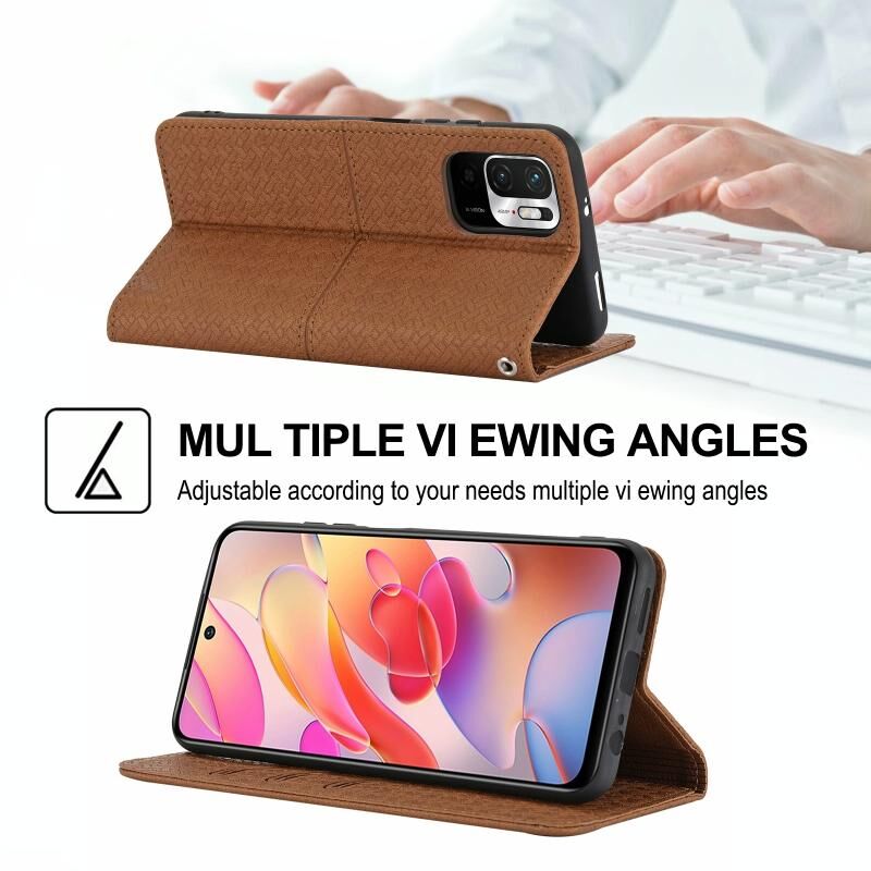 Θήκη τηλεφώνου Xiaomi Redmi Note 11 υφασμάτινης υφής, ραφής, μαγνητική, οριζόντια αναδιπλούμενη από δερματίνη PU (Καφέ)