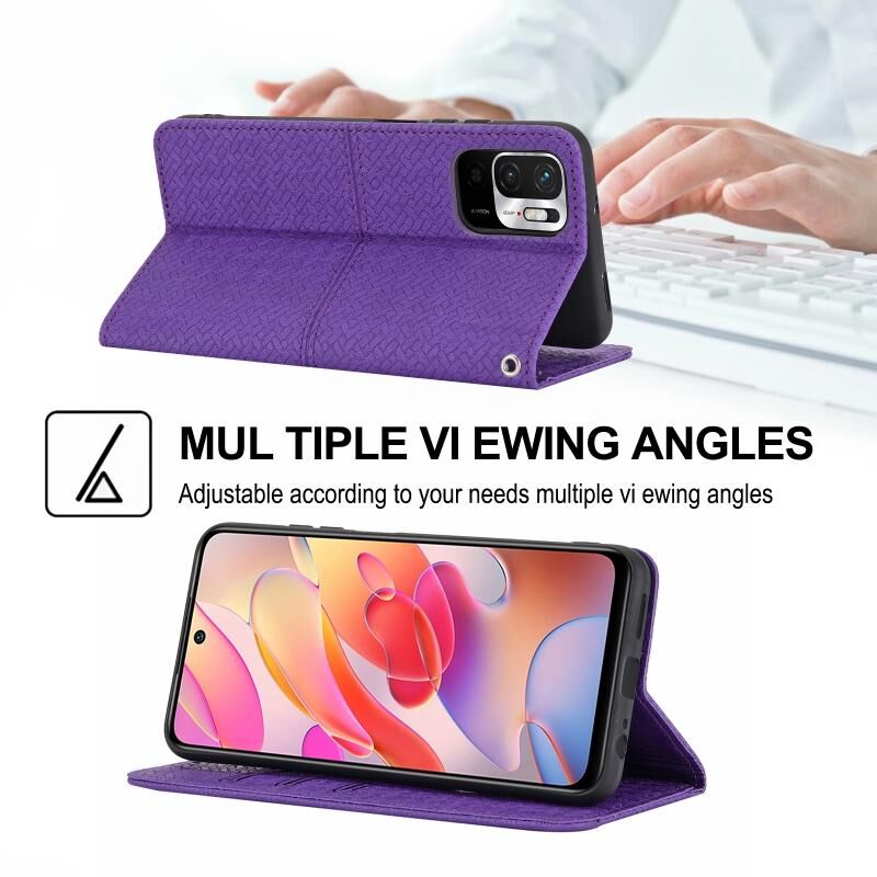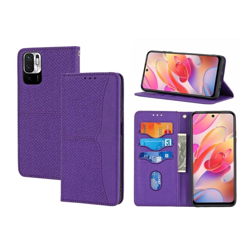 For Xiaomi Redmi Note 11 Woven Texture Stitching Magnetic Horizontal Flip PU Leather Phone Case(Purple)