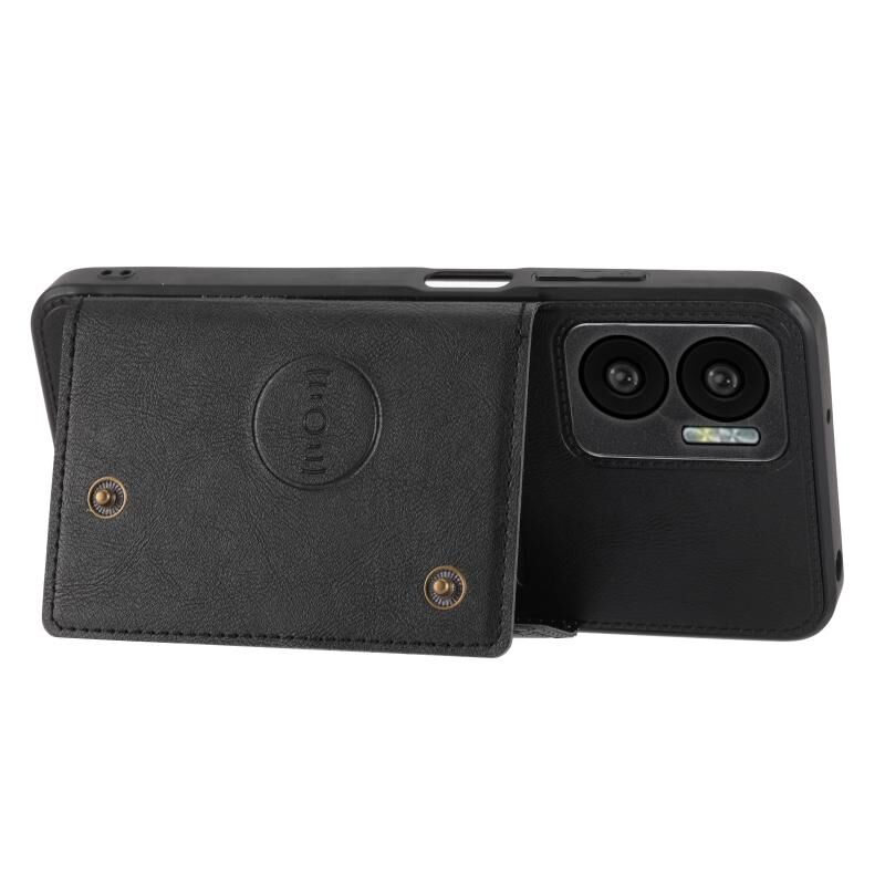 Για Xiaomi Redmi Note 11E Διπλή πόρπη PU + TPU Shockproof μαγνητική θήκη τηλεφώνου (μαύρο)