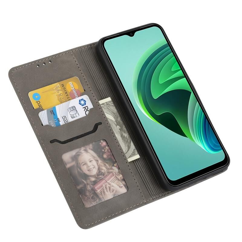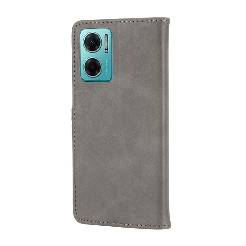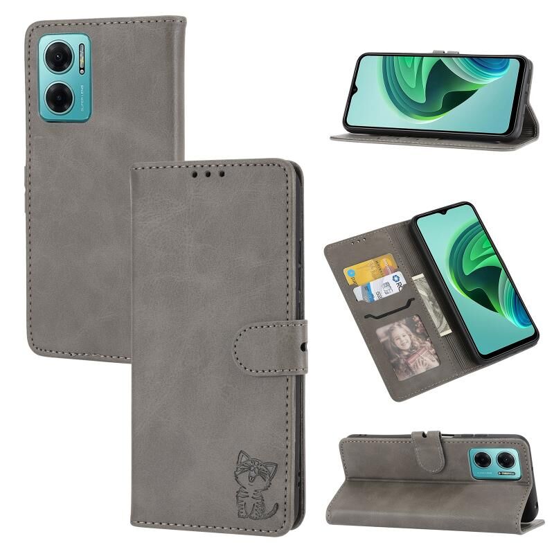 Θήκη τηλεφώνου δερμάτινη με ανάγλυφο σχέδιο χαρούμενης γάτας για Xiaomi Redmi Note 11E (Γκρι)