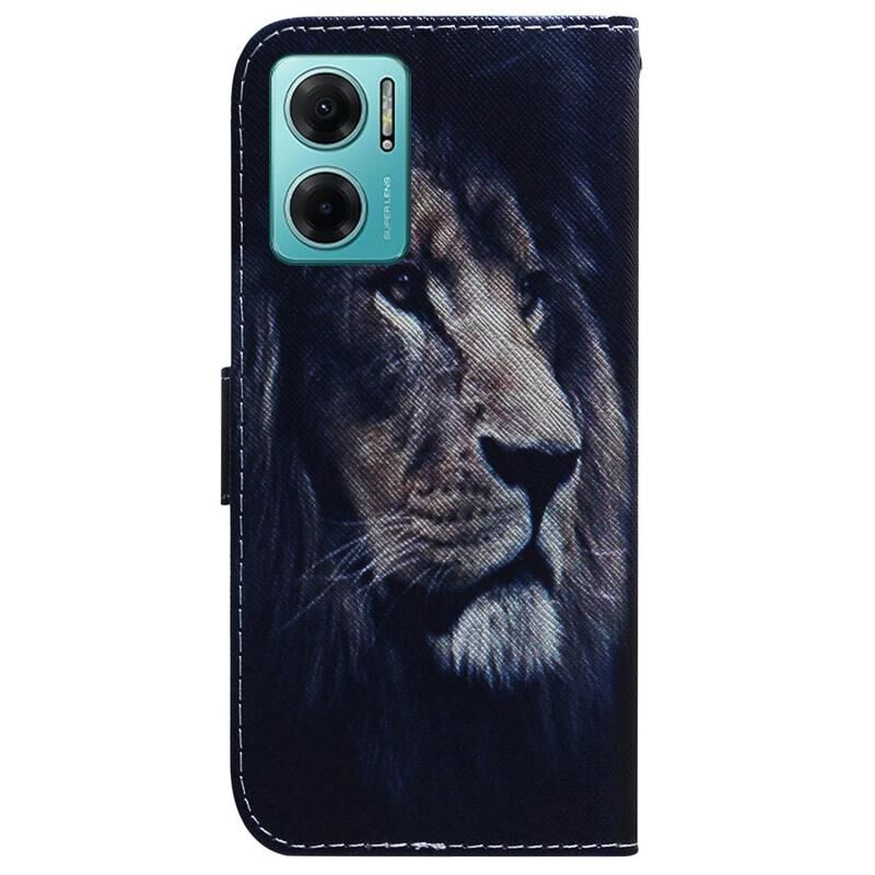 Θήκη τηλεφώνου από δέρμα με έγχρωμο σχέδιο για Xiaomi Redmi Note 11E / Redmi 10 5G (Λιοντάρι)