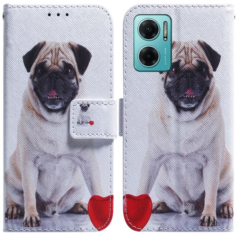 Θήκη τηλεφώνου από δέρμα με έγχρωμο σχέδιο για Xiaomi Redmi Note 11E / Redmi 10 5G (Pug)