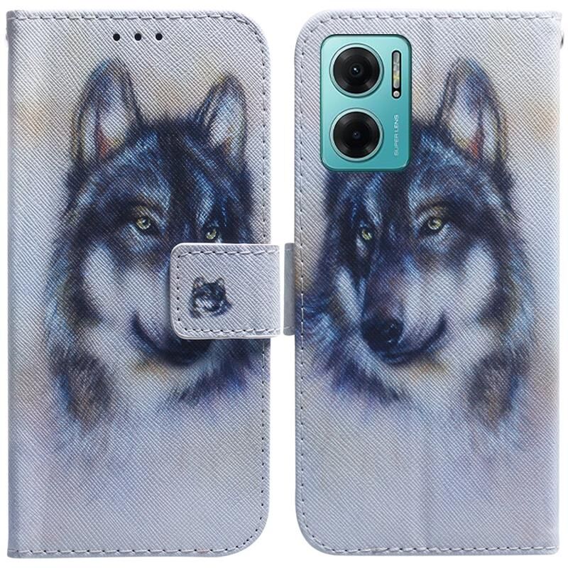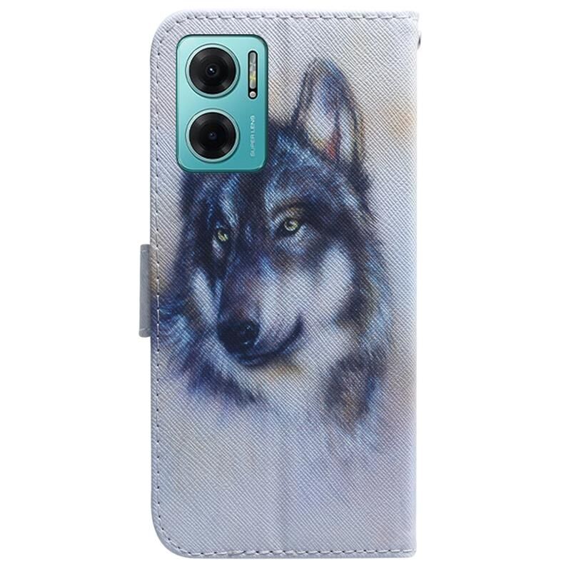 Θήκη τηλεφώνου από δέρμα με έγχρωμο σχέδιο για Xiaomi Redmi Note 11E / Redmi 10 5G (Λευκός Λύκος)
