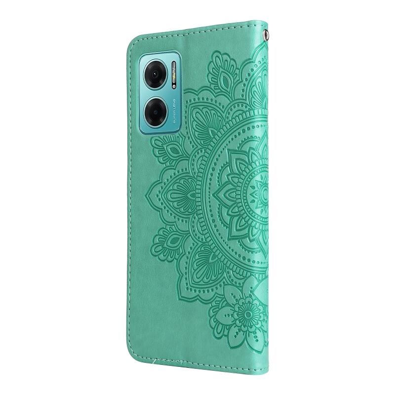 Για Xiaomi Redmi Note 11E / Redmi 10 Prime + 5G 7-πέταλα λουλούδια ανάγλυφο μοτίβο οριζόντια Flip δερμάτινη θήκη (πράσινο)