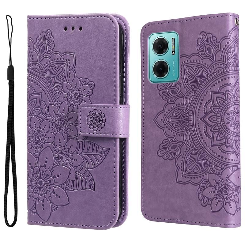 Για Xiaomi Redmi Note 11E / Redmi 10 Prime + 5G 7-πέταλα λουλούδια ανάγλυφο μοτίβο οριζόντια Flip δερμάτινη θήκη (ανοιχτό μοβ)