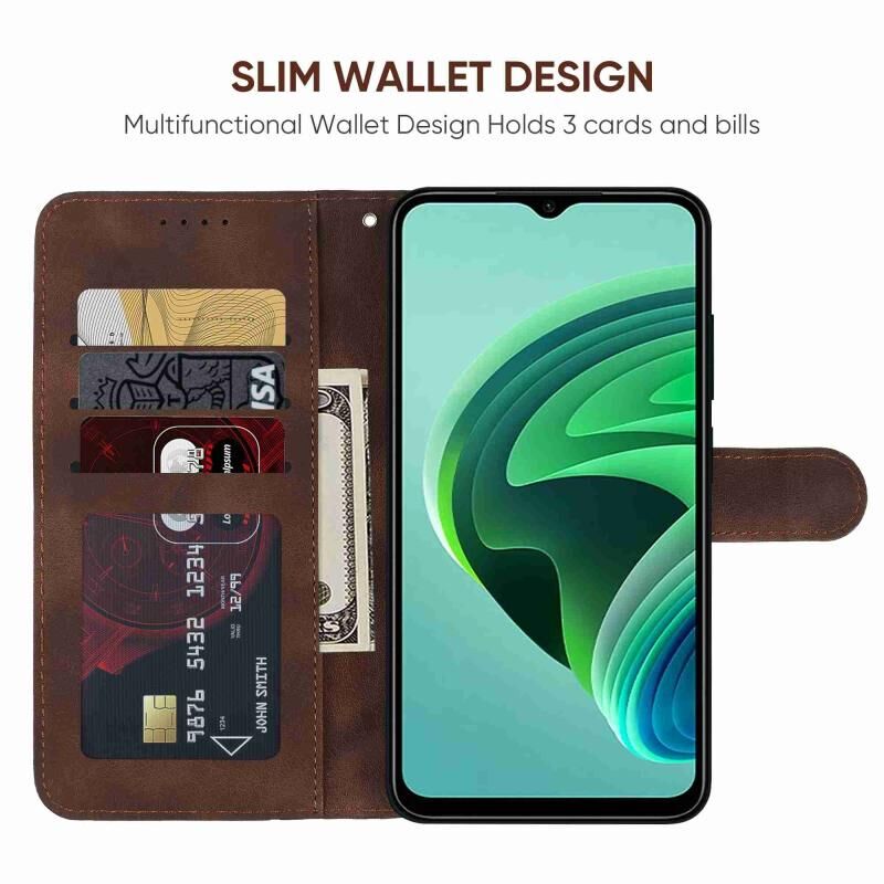 Για Xiaomi Redmi Note 11E δέρμα αίσθηση γεωμετρικές γραμμές δερμάτινη θήκη τηλεφώνου (Καφέ)