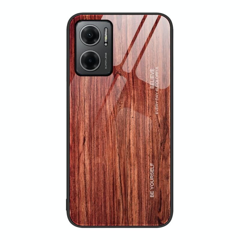 Θήκη Προστασίας από Γυαλί με Υφή Ξύλου για Xiaomi Redmi Note 11E (Καφέ)