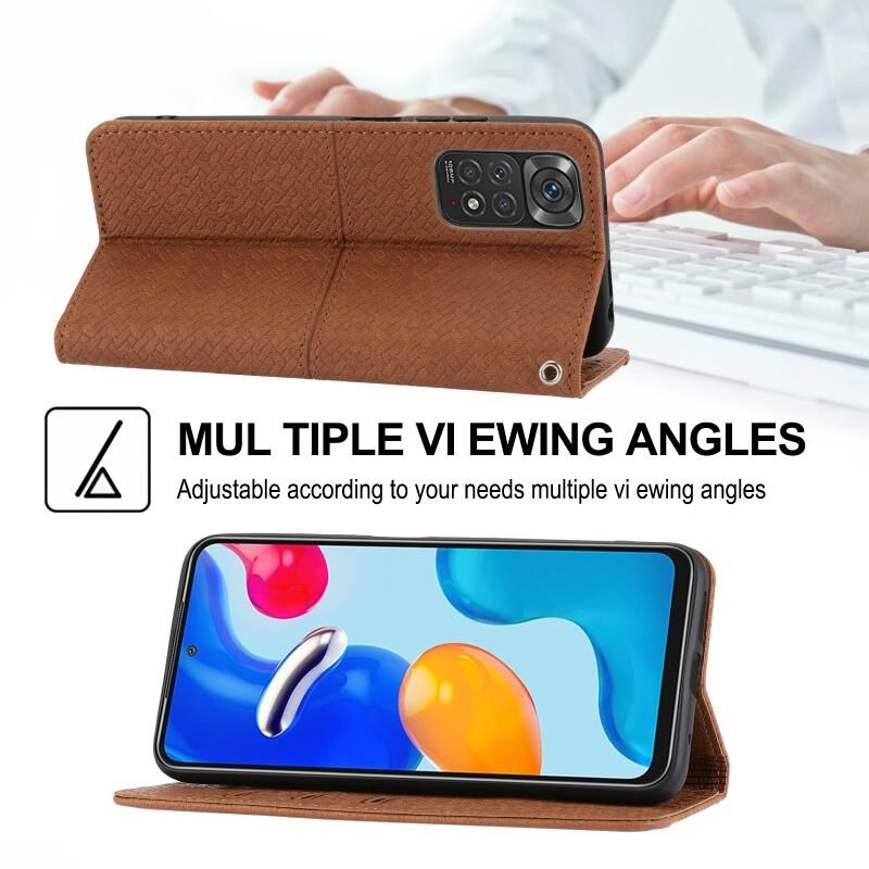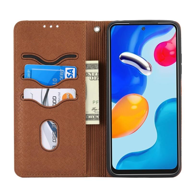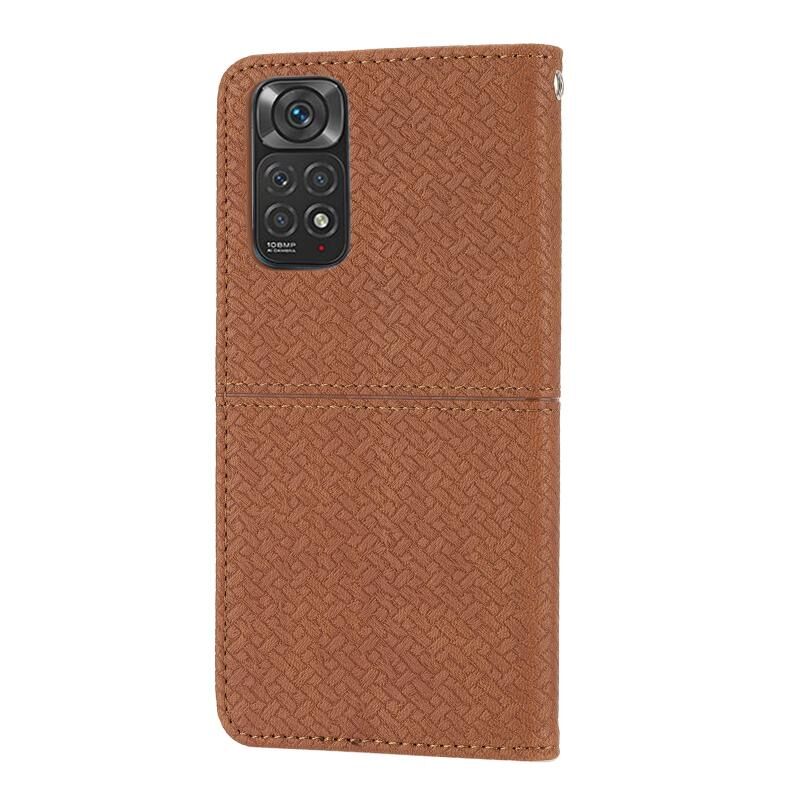 Για Xiaomi Redmi Σημείωση 11E υφαντά υφή ραφή μαγνητική PU δέρμα τηλέφωνο υπόθεση (καφέ)